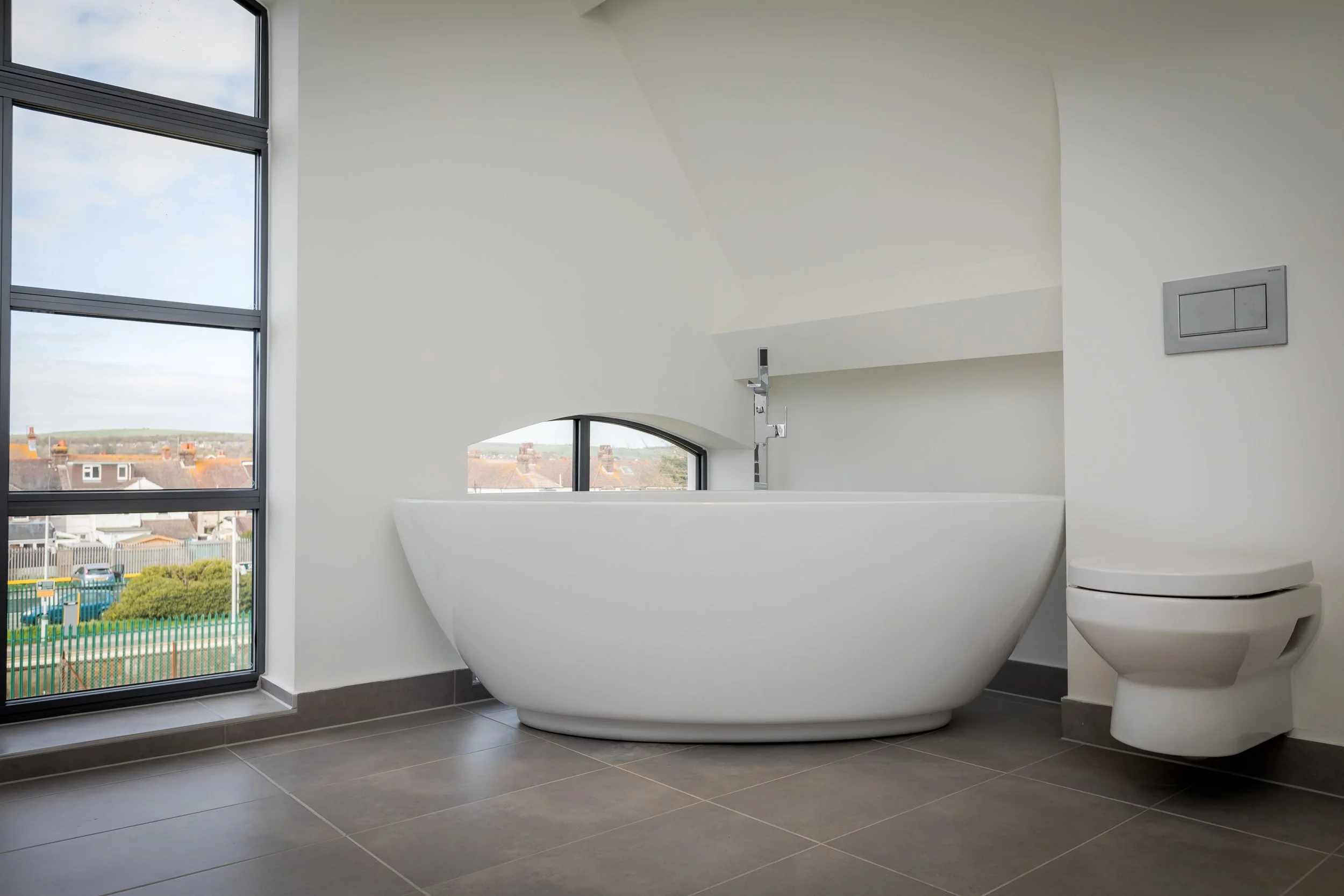 A former workshop and parking area situated in the heart of a West Sussex seaside town. With creative design and much planning the building was converted to form 4 loft style apartments. The parking area was then used to build 2 town houses. This building has some stunning features including large oval shaped windows, open plan living spaces and duplex style apartments.